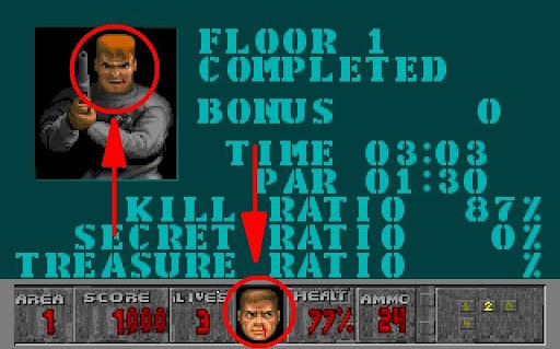 The first thing I noticed was that while the statusbar character had been changed to that of the DOOM counterpart, it seems that Z. Franz forgot to remove/replace other B.J Blazkowicz references: